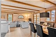 Videre gang i huset kommer man til køkkenet, som indeholder alt hvad der til ferien behøves, og ligger i delvis åben forbindelse med stuen, som er opdelt med en spiseafdeling i den ene side, og en sofaafdeling i den anden side. Fra stuen går man videre ud i den dejlige havestue, som indbyder til masser af hygge og spil, og også indeholder et bordfodboldbord.