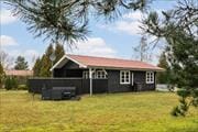 Sommerhuset byder på en hyggelig terrasse, som er delvist overdækket. Derudover er der en stor græsplæne, hvor der er plads til en masse sjov og leg.
