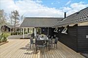 Omgivet af flotte og skønne terrasseområder, er dette hus ideelt til ferie året rundt. Den Delvist overdækkede terrasse, samt god have med gyngestativ, gør at huset og haven kan udnyttes i al slags vejr.