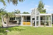Dette feriehus er virkelig en unik perle. Feriehuset er indrettet med det fineste rosa køkken, fuldt udstyret med alt hvad man kunne drømme om til sin ferie. Efter køkkenet kommer du ind træder du ind i den åbne spisestue med masser af spisepladser samt husets første stue med brændeovn. I forbindelse med den første stue er desuden en udestue med udsigt over den hyggelige have fra de mange store vinduer. Feriehuset har 4 soveværelser, samt en alkove med sovepladser. 3 af soveværelserne er i åben forbindelse med den dejlige overdækkede terrasse. Derudover byder huset på 2 badeværelser samt en sauna.