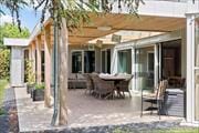 Den overdækkede terrasse er udstyret med et hyggeligt hjørne med chaiselong samt et spisebord under tagvinduerne. Huset har en skøn stor have samt små hyggelige kroge, bl.a. under den fine stråpergola. Fra haven er der direkte udgang til diget og den smukke badestrand.