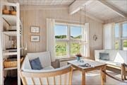 Når du træder ind i sommerhuset, vil du straks føle dig hjemme. Den hyggelige stue prydes af en brændeovn, hvor du kan nyde de lange sommeraftener med en god bog eller tilbagelænede stunder i godt selskab. De store glaspartier lukker nordsøens lys ind og giver en fantastisk udsigt til de omgivende klitter. I det velindrettede køkken med spiseplads kan du tilberede lækre feriemåltider, mens du nyder udsigten. De tre lyse soveværelser, der alle har direkte adgang til terrasserne, skaber et indbydende miljø for afslapning, og det funktionelle badeværelse med gulvvarme tilføjer ekstra komfort.