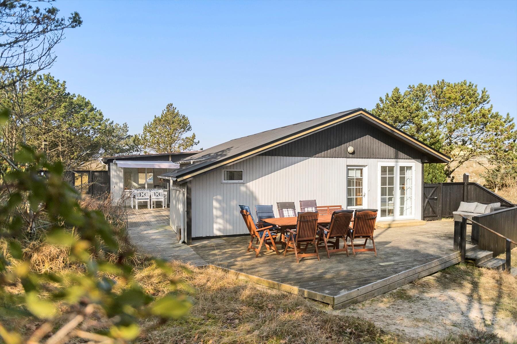 Når du hellere vil sidde helt ude i det fri end inden døre i udestuen, har du flere herlige terrasser at vælge imellem. Det gør det nemt at finde en god krog med de rette mængder af sol eller skygge, og selv måltiderne kan du tilberede herude i de idylliske rammer takket være grillen. Som noget ganske særligt står der to bunkers på grunden, og du har adgang til dem begge. De er et spændende vidnesbyrd fra fortiden, som er interessante at udforske – men bemærk, at tilgangen ved den ene er besværlig og derfor på egen risiko. På grunden finder du også et skur, hvor du og familien kan stille jeres cykler eller barnevognen, når I vender hjem fra dagens udflugter.