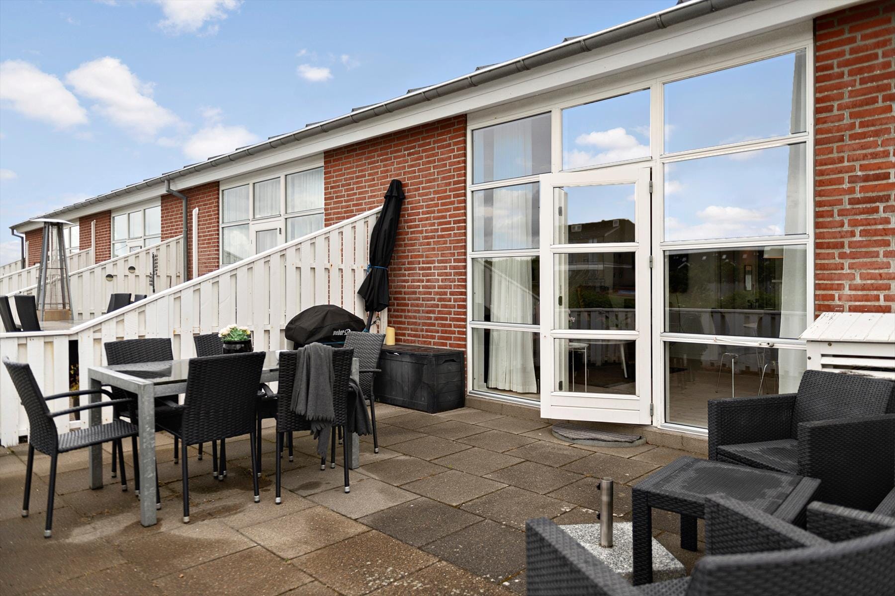 Til lejligheden hører en dejlig lukket terrasse, hvor du kan nyde udelivet i rolige og afskærmede omgivelser. Her kan du starte dagen med kaffe i morgensolen eller slutte af med et køligt glas vin, mens solen går ned over Fanø Bad. Terrassen indbyder til både afslapning og hyggelige måltider under åben himmel – og med godt læ og privatliv føles det som din egen lille oase. Lejlighedens placering giver dig også nem adgang til de grønne fællesområder, hvor børnene kan lege frit, mens de voksne nyder en stund med ro og nærvær. Når vejret tillader det, er det oplagt at tilbringe store dele af dagen udendørs – og vende hjem med røde kinder og sand mellem tæerne.