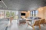 Sommerhuset er opført i 2023, og inden døre får du hele 140 velafstemte kvadratmeter at folde ferielivet ud på. Alt, lige fra det lysegrå gulv til det mørkere akustikloft viser, at der er taget sikre, smagfulde valg, når det gælder indretningen – se bare den smukt buede trappe, der forbinder stueetagen med førstesalen. En stor del af stueetagen er dedikeret til det flotte opholdsrum, hvor du kan samle familien til hyggelige madlavningsstunder, lækre middage og tilbagelænet sofaafslapning. Soveværelset og badeværelset i stueplan fungerer som den oplagte forældreafdeling, og på førstesalen venter yderligere to soveværelser og et badeværelse, der er holdt i samme gennemførte stil.