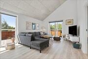 Mere præcist er der tale om et lyst og energivenligt feriehus på hele 150 m2, så du kan være ganske sikker på, at du og dine kære får det rart inden døre. Det store, lyse og højloftede opholdsrum fungerer som sommerhusets hjerte: Hvis du elsker at lave mad, kan du se frem til at stå i det veludstyrede køkken, og spisebordet er et herligt sted at samles til udsøgte måltider og gode samtaler. Sofaafdelingen indbyder til blandt andet boglæsning, kaffe og hyggesnak, og hvis der skal være lidt mere gang i den, kan du udfordre de andre i en omgang pool. Soveværelser er der tre af, og her kan du stort set være sikker på at få en god nats søvn – ikke mindst hvis du slutter dagen af med et varmt spabad på det ene af husets to badeværelser.