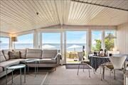 Hus-ID: FY217Dejligt sommerhus i 2 etager med direkte adgang til stranden beliggende i sommerhusområdet Tørresø. Huset er renoveret i 2009 og indeholder på 1.sal et køkken i åben forbindelse med en hyggelig opholdsstue med brændeovn og store panoramavinduer, hvorfra man kan nyde udsigten udover vandet. Fra 1. sal er der en meget stejl trappe, med en meget lille åbning, til underetagen og udgang til terrassen og haven – OBS: Trappen egner sig ikke for gangbesværede. Haven er helt lukket og omkranset af et hegn. I underetagen, som man også har adgang til udefra, er der 2 soverum samt badeværelse. Fra underetagen er der ligeledes udgang til en terrasse. Der er yderligere et soverum med dobbeltseng i et lille anneks.