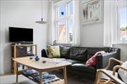 I denne feriebolig kan du bo helt centralt i Danmarks eneste klippeby. Lejligheden er i 2 etager og er hyggelig indrettet og møbleret. I stueplan finder du den dejlige stue med godt lysindfald. Stuen er indrettet med hyggehjørne og TV samt i direkte tilknytning til det funktionelle køkken med spiseplads. Via trappen til 1. sal kommer du til to af lejlighedens tre værelser (2 med dobbeltsenge og et med to enkeltsenge) - udsigten fra værelserne er udover byen. Det sidste værelse samt badeværelset med toilet og bruseniche er placeret i stueplan. Et fantastisk sted for den gode ferie med adgang til lækker pool.