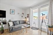 Dejlig lys og hyggeligt indrettet lejlighed med dejlig stue i forbindelse med åbent køkken. Stuen er indrettet med spiseplads og hyggehjørne, hvorfra der er direkte udsigt til Østersøen og Gudhjem By. Der er udgang til balkonen fra stuen, så stemningen fra Gudhjem By kan nydes fuldt ud. Soveværelset er indrettet med dobbeltseng og har adgang til pool-området via svalegangen. Badeværelset er rummeligt og har gulvvarme. Alt i alt en dejlig lejlighed til din ferie.
