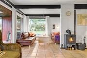 Skønt sommerhus i 2 plan. Fra husets fordelingsentre er der adgang til stue kombineret med funktionelt køkken, det ene af tre værelser i huset samt badeværelse med toilet og bruseniche. Stuen er opdelt i hyggestue med brændeovn og spiseområde med god udsigt over grunden. Det åbne køkken er centralt placeret og har de nødvendige hvidevarer. Der er udgang fra stuen til den dejlige, delvist overdækkede, terrasse, som går rundt om huset. Værelset i stueplan er indrettet med to enkeltsenge. Første sal er opdelt i to gode værelser - det ene med to enkeltsenge og det andet med stor dobbeltseng, hvorfra der er udsigt til Østersøen. Et fantastisk lyst og hyggeligt indrettet sommerhus.