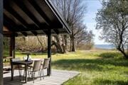 Huset ligger på en naturgrund, her er gjort plads så solens stråler når terrassen. Terrassen er møbleret og du kan sidde her uforstyrret og nyde dagens måltider og selvfølgelig det pragtfulde bornholmske sommervejr. Del dagens oplevelser her mens grillen varmer op til aftensmaden. Bilen kan I parkere ved huset.