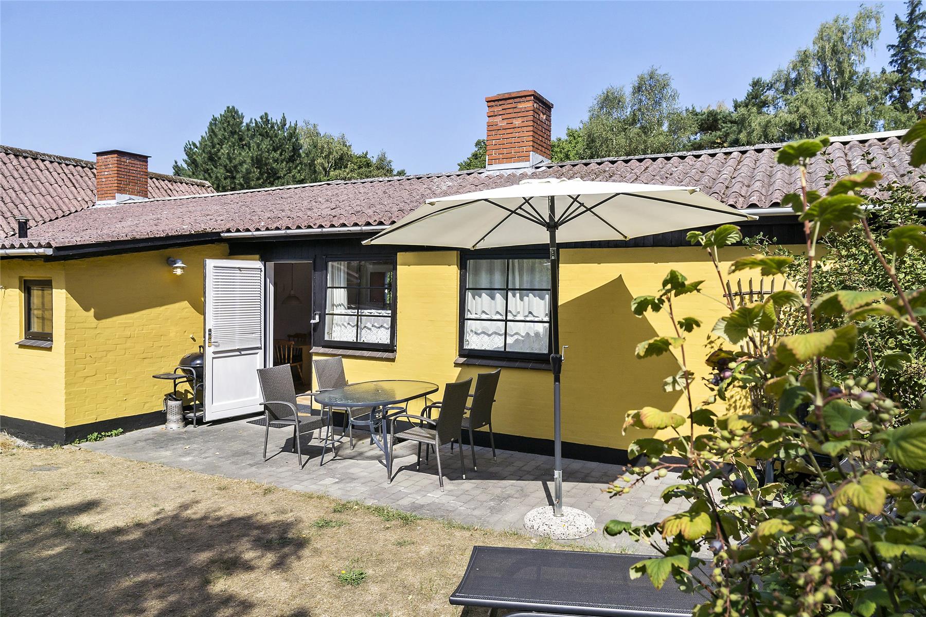 Terrassen ligger uforstyrret og der er sørget for at solen kan skinne på denne lille oase. Nyd dagens måltider her til fuglenes muntre fløjten. Der er plads til leg på græsset foran terrassen. Er bilen med på ferien kan den parkeres ved huset.