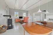 Allerede når du træder indenfor i dette tidligere missionshus på Krakvej ved Vang, mærker du den særlige stemning, som kun et hus med historie og sjæl kan give. Sommerhuset emmer af hygge og varme – bogstaveligt talt, for her er hele to brændeovne, én i stuen og én i det funktionelle spisekøkken. Det skaber en særlig ro og gør det oplagt at samles med familien til varme drikke og nærvær, mens flammerne knitrer i baggrunden. Stuen og køkkenet ligger i åben forbindelse, så snakken flyder let på tværs af rummene – her kan du kokkerere uden at gå glip af hyggesnakken i sofaen. Indretningen er enkel, men hjemlig, og alt er tænkt med henblik på, at du skal føle dig godt tilpas. Sommerhuset har to gode soveværelser og en ekstra sovesofa i stuen, så her er god plads til at samle både familien og måske et vennepar til en uforglemmelig ferie. Badeværelset er lyst og praktisk med bruseniche – perfekt efter en dag med udflugter og oplevelser i den bornholmske natur.