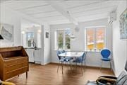 I stueplan er der entre, med adgang til dejligt badeværelse med gulvvarme. Stort åbent køkken med glaskeramiskkomfur og spise afdeling, grænsende op til stuen. Der er udgang til den lukkede gård fra køkkenet. Fra entre er der trappe til 1. salen. På 1. sal er der 2 værelser med dobbeltsenge. Fra begge værelser, kan man se ned over byen, havnen og se havet.