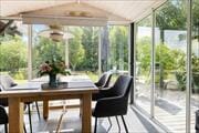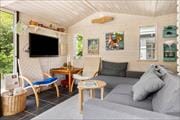 På forsiden af huset finder du en dejlig terrasse og have, hvor dagens måltider og solen kan nydes. Tænd op i grillen på den overdækkede terrasse ved søen og nyd en forfriskning i aftensolen imens maden tilberedes. De mange gode havemøbler gør, at der altid kan findes en god plads i enten solen eller skyggen. Alt indbyder til råhygge efter en skøn dag ude på øen. Efter en tur på stranden eller leg med børnene i den fantastiske have, kan kroppen skylles af under udendørsbruseren med både koldt og varmt vand. Er bilen med kan den parkeres og oplades på grunden uden for hegnet.
