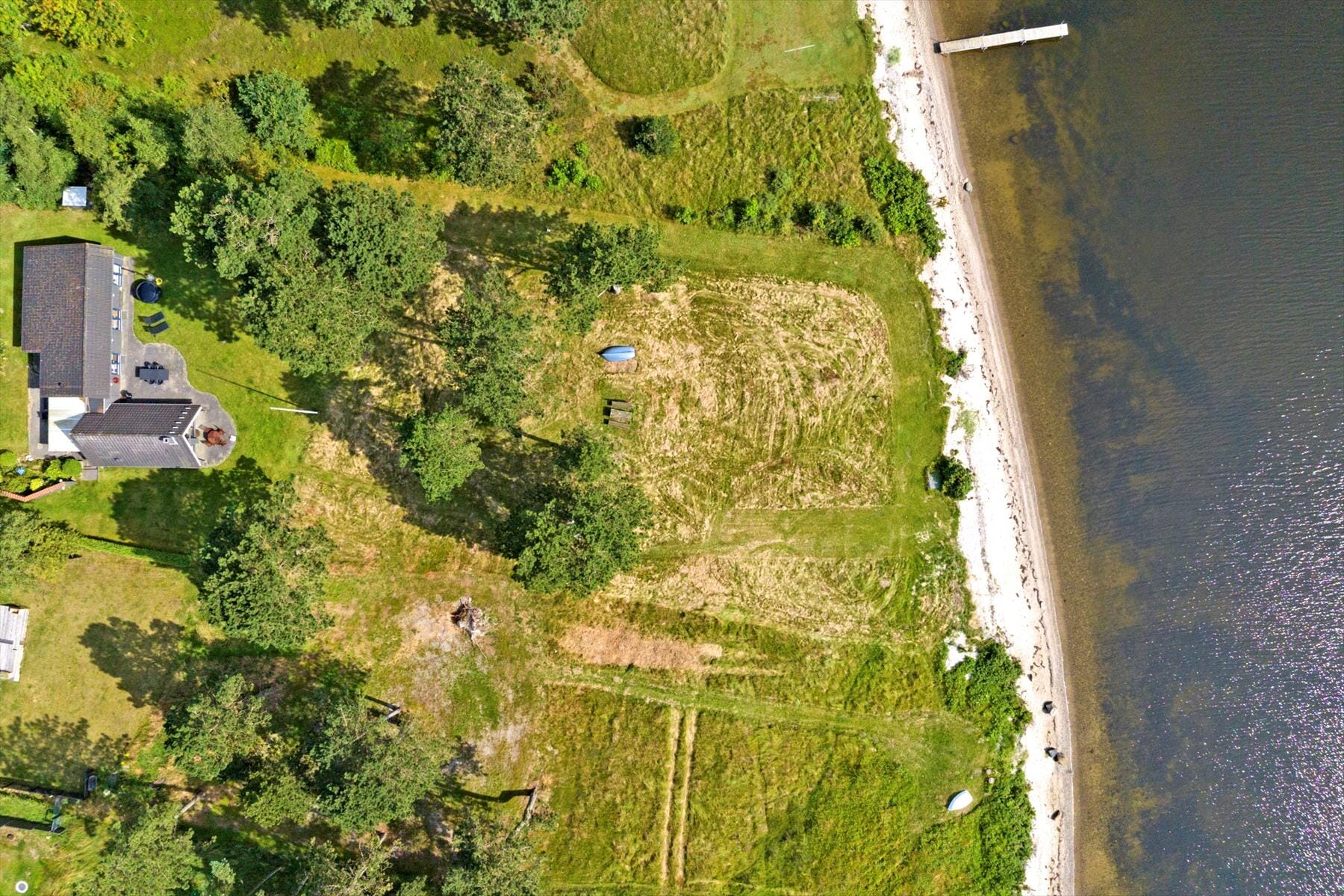 Sommerhusets naturgrund er med sine 5968 m2 imponerende stor, og den fører lige ned til vandet, så du kommer til at holde ferie i det skønneste landskab og kan følge med i, hvordan fjorden ændrer udseende i takt med vejrudsigten og tidspunktet på dagen. Start dagen med en dukkert – og hvis du ikke vil blive på stranden for at tørre i solen, kan du være tilbage ved huset, inden morgenkaffen er klar. Fra både soveværelserne, udestuen og køkkenet har du direkte adgang til det dejlige terrassemiljø, der breder sig rundt om huset. Med andre ord kan du smutte ud, så snart vejrguderne smiler, og der er flere skønne opholdspladser at vælge imellem, hvis du vil sætte dig med avisen eller spise frokost med dine kære. Om aftenen har I mulighed for at grille, og hvis I vil afslutte dagen på helt tilbagelænet vis, kan I gå i vildmarksbad, mens stjernerne begynde at kigge frem på himlen.