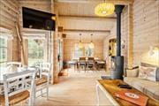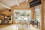 Sommerhuset består af et hovedhus og et anneks, forbundet af en rummelig træterrasse, der indbyder til udendørs ophold. I hovedhuset finder du et åbent køkken i forbindelse med en opholds- og spisestue, hvor vinduerne lader dagslyset strømme ind og skaber en hyggelig atmosfære. Efter en dag fuld af oplevelser kan du nyde et afslappende bad i husets badeværelse, som også er udstyret med vaskemaskine og tørretumbler for din bekvemmelighed. De to soveværelser i hovedhuset tilbyder komfortable sovepladser; det ene med en dobbeltseng og det andet med en enkeltseng samt en køjeseng, hvor kun den nederste køje er beregnet til brug.