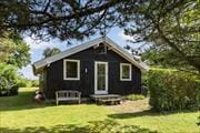 - i dette lyse og venlige sommerhus. Huset har 3 værelser med en dobbetseng i det store og enkeltsenge i de 2 små. Huset har et åbent køkken i forbindelse med stuen. Der er mulighed for at trække den dobbelte sovesofa ud hvis man kommer mere end 4 personer. Badeværelset er moderne, pænt og lyst. Hvis du har lyst kan du også vælge at bade udendørs under åben himmel.