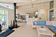 I dette charmerende sommerhus i hjertet af Liseleje er der lagt op til en afslappende ferie med familien. Husets åbne opholdsrum kombinerer stue og køkken, så samværet kan nydes fuldt ud – hvad enten der bliver lavet mad, spillet brætspil eller hygget foran brændeovnen på kølige aftener.