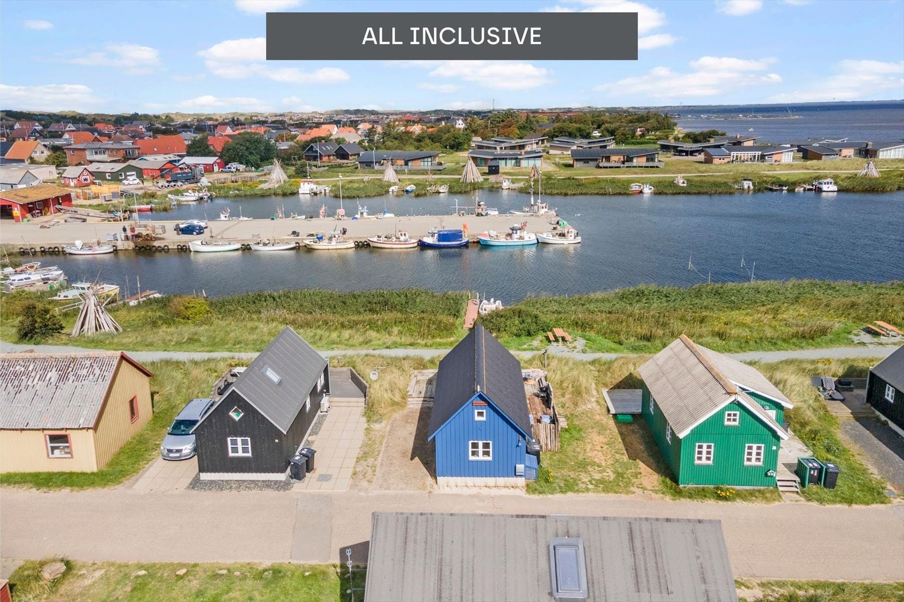 Den særlige beliggenhed giver jer et unikt indblik i livet på havnen. Står I tidligt nok op, kan I følge med i, hvordan fjordfiskerne gør klar til at sejle ud på vandet – og hvis I sover længe, kan I sikkert fange dem, når de vender hjem med dagens fangst. Fra den rolige og stemningsfulde adresse har I kort gåafstand til byens sluse, hvor I finder mange populære fiskepladser til lystfiskerne, og på den anden side venter Hvide Sandes hyggelige bymidte, der har et godt udvalg af spisesteder og butikker. Byen har to strande, hvoraf sydstranden er den mest populære blandt badegæster – og hvis I vil surfe, kan I enten boltre jer her på Vesterhavets bølger eller stævne ud på fjordens roligere vand.