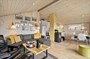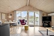 Det 68 m2 sommerhus + 12 m2 hems rummer alt, hvad I skal bruge for at holde en komfortabel og afslappende ferie. Der er endda skruet ekstra op for wellness-faktoren, for der er spabad på badeværelset – og en hyggeaften med en god film nær stuens brændeovn er også en skøn form for selvforkælelse som afslutning på feriedagen. Stuen ligger i åben forbindelse med et godt køkken, og side om side ligger tre soveværelser med i alt seks sengepladser. Fra stuen fører en trappe op til en hems, hvis nogle af jer hellere vil sove heroppe, og i løbet af dagen fungerer den glimrende som legeområde for børnene.