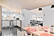 Hus-ID: 362Dette lækre sommerhus byder på luksusdetaljer som spabad og sauna på det ene badeværelse, og planløsningen passer godt til otte personer. Beliggenheden for enden af Fyrmarken er helt klart også værd at fremhæve, for huset ligger lige op til fredningslinjen og har den flotteste udsigt over klitheden mod Lyngvig Fyr.
