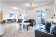 Hus-ID: 805Denne velindrettede ferielejlighed på hele 145 m2 byder på tre regulære soveværelser, og med to badeværelser og et stort, lyst opholdsområde er her god plads til seks personer. Lejligheden ligger midt i Hvide Sandes centrum, og herfra har I byens stemningsfulde havnemiljø og Vesterhavets brusende bølger for jeres fødder.