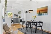 Det klassiske træhus byder på den helt rigtige, autentiske sommerhuscharme, som gennem generationer har dannet ramme om skønne feriedage og uforglemmelige ferieminder i sommerlandet. Vinkelhuset byder på en soveafdeling med to soveværelser og sengepladser til fire personer samt østvendte vinduer, så I kan lade jer vække af morgensolen. Denne del af huset byder også på et mindre men velindrettet badeværelse med bruseniche og gulvvarme. Køkkenet og stuen glider i ét, og det moderne køkken er godt udstyret til små såvel som store kulinariske udfoldelser, mens vaskemaskinen giver mulighed for tøjvask ferien igennem. Skrånende lofter med frilagte spær giver en luftig og charmerende atmosfære, og med både varmepumpe og brændeovn er her altid en behagelig temperatur. Stuen er indrettet med et spisebord samt et sofaarrangement, hvor der er tv, Apple-TV og parabol. Store vinduespartier giver en skøn udsigt til omgivelsernes smukke klitlandskab, og synet kan også nydes i den dejligt udestue, der har vinduespartier fra gulv til loft. Her er en terrassevarmer så selv på en kølig dag, kan I slappe af her og nyde udsigten med en kop kaffe.