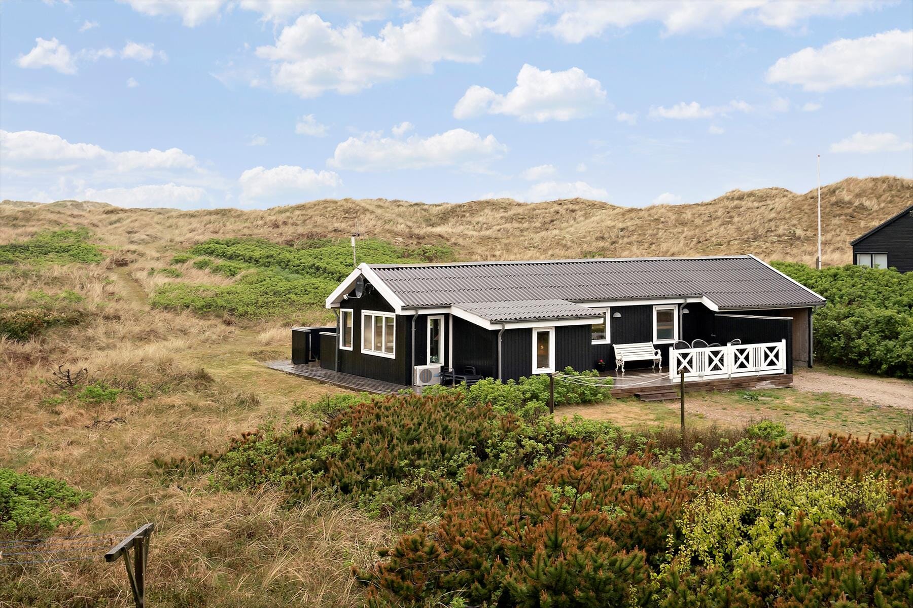 Det er noget ganske særligt at holde ferie på Holmsland Klit – ikke mindst når det foregår i dette dejlige sommerhus. Fra stuen og terrassen kan I se lige ud på Aargabs smukke klitlandskab, og til den anden side har I kig til Ringkøbing Fjord.