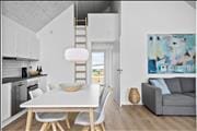 Der er meget at se og opleve i Hvide Sande og omegn – men det kan nu anbefales at sætte en del tid af til afslapning og hygge inden døre i lejligheden, der ligger på første sal. Atmosfæren er lys og luftig takket være de store vinduespartier og loftet, der går helt til kip. Det moderne møblement passer godt til arkitekturen, og med et lækkert åbent køkken, et flot badeværelse og et dejligt soveværelse er der taget højde for både funktionalitet og komfort. Fra køkkenet har I adgang til en hems, der med et lille vindue og kig til stuen fungerer som en hyggelig soveplads for både børn og voksne.
