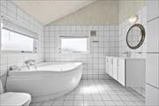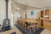 Hus-ID: 614Dette sommerhus på hele 115 m2 er indrettet med brændeovn, langbord og stor sofaafdeling i stuen og med spa og sauna på det største badeværelse. Ude har I flere gode solterrasser at vælge imellem, og Bjerregård Strand venter bare 150 meter væk. Kort sagt er det et skønt sted at holde ferie!