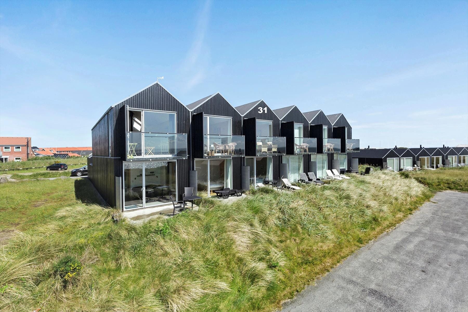 Sommerhuset er del af den moderne bebyggelse, der samlet går under navnet Slusehusene. Det ligger ikke bare få skridt fra fjorden, men også i kort gåafstand til bymidtens spisesteder og handelsgader, og de skønne strande ved Vesterhavet kan I gå til på et kvarters tid. Dejligt tæt på huset finder I også den lille fjordhavn Tyskerhavnen, hvor I kan følge med i fjordfiskernes hverdag på kajen. Ved byens sluse kan der flere gange årligt fanges store mængder sild, og I kan også prøve lykken i fjorden og havet foruden Holmsland Klits put and take-søer.