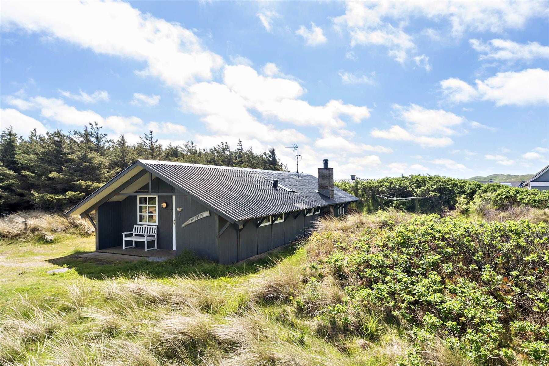 Hus-ID: 409Dette træsommerhus byder på en skøn indretning med klassisk sommerhusatmosfære og masser af lys og luft, og her er sengepladser til seks personer. Huset ligger direkte ud til en lille, idyllisk plantage, og med knap 400 meter til Vesterhavet kan I nyde feriedagene i den fri natur.