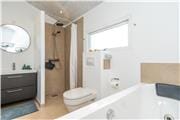 En indbydende sommerhusatmosfære melder sig lige fra ankomsten, når I træder ind i velindrettede rum med loft til kip og lys træbeklædning. Det stilfulde interiør viser tydeligt, hvor grundig seneste modernisering var – se for eksempel de to lækre badeværelser, hvoraf det ene er udstyret med spabad. Soveværelser er der tre af, og her kan alle se frem til at sove komfortabelt i de gode senge. Sommerhuset byder for øvrigt på to opholdsarealer, der ligger i åben forbindelse, blot adskilt af et gangareal. En lille opholdsstue giver plads til børnenes leg, eller hvis teenageren vil se tv i fred. Ellers kan I alle samles i den store stue, hvor I kan hygge jer ved brændeovnen eller nyde fjordudsigten gennem vinduerne, og fra det veludstyrede køkken kan I hurtigt lange retterne hen til spisebordet, når det er spisetid.