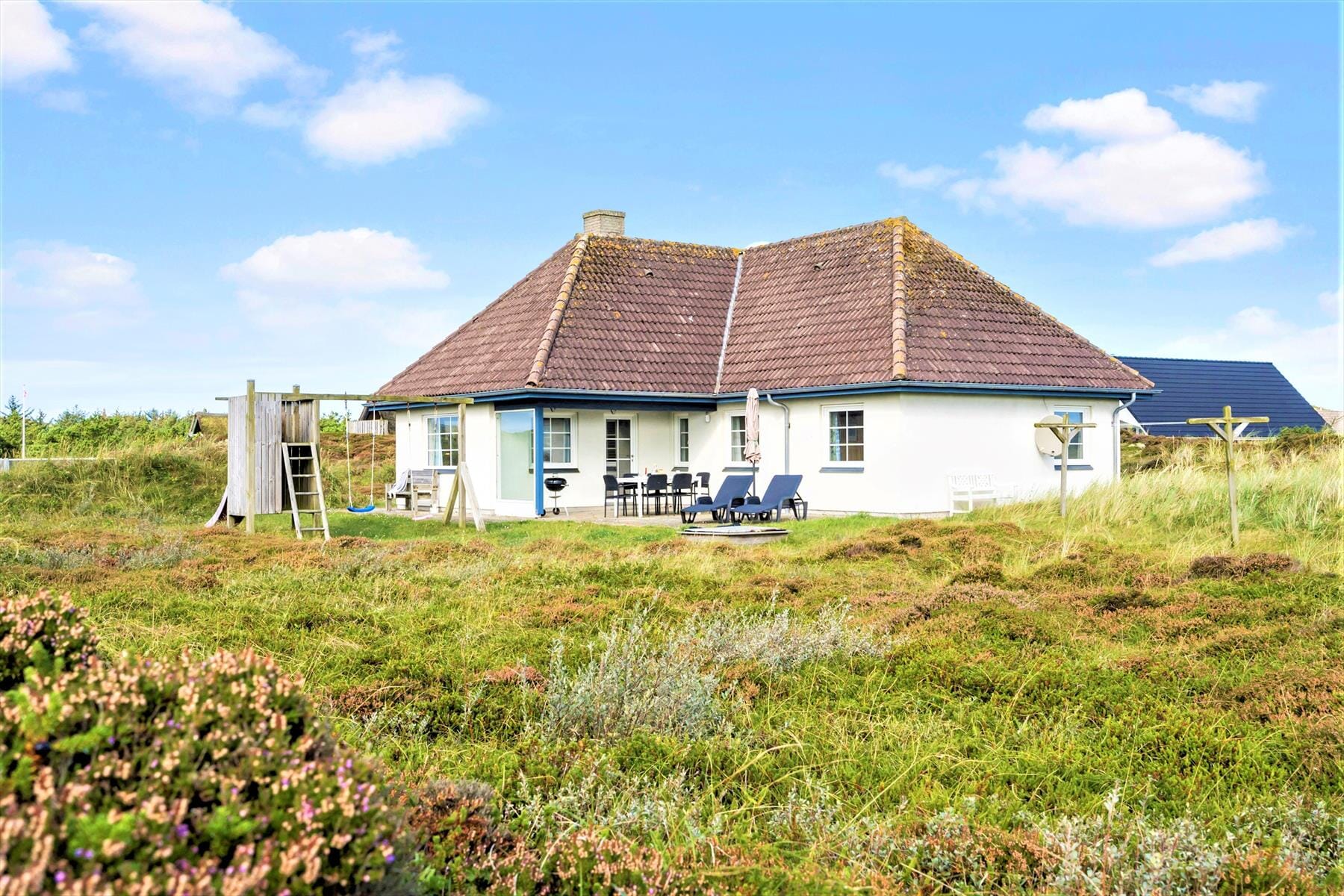 Hus-ID: 638På Grønsletten 5 kan I holde ferie i de skønneste naturomgivelser. Dette hyggelige, ældre sommerhus ligger på en 3770 m2 stor naturgrund meget tæt på Bjerregårds åbne hedelandskab og bløde klitter, og Vesterhavet venter bare 600 meter væk.