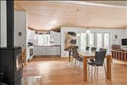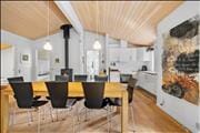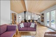 Lyse trælofter, pæne gulve og hvide vægge pryder rummene og skaber en let og luftig ramme om de indendørs hyggestunder – ikke mindst i opholdsrummet, hvor opholdsstue og køkken er forenet. Her er der store vinduespartier og havedøre ud mod terrassen, og en brændeovn står klar til at sprede en passende temperatur på eventuelle kølige aftner. Husets kreative rum giver god plads til både fordybelse og leg. Så uanset om det er et spil bordtennis eller yoga, er der plads til det hele. Her er også mulighed for at slappe af med en god bog eller male de sten I har fundet på stranden, så I kan tage et minde med hjem. Den fornuftige planløsning byder for øvrigt på tre gode soveværelser og et rummeligt badeværelse med vaskemaskine og gulvvarme. Alt i alt har I 110 m2 at brede jer på, så der er med andre ord god plads til seks personer her i huset.