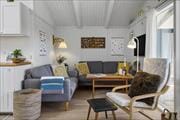 Huset, som er opført i 1979, er et ganske klassisk træsommerhus set udefra. Inden døre er mange af de typiske sommerhustræk også bevaret – og samtidig er det tydeligt at se, at rummene er blevet omsorgsfuldt moderniseret. Renoveringen er sket i 2019, så i dag er her et vellykket miks af komfortable møbler, moderne design og charmerende retro-detaljer. Planløsningen byder på et badeværelse og tre soveværelser, som i alt kan rumme fem overnattende gæster. Husets samlingspunkt er en dejlig stue med loft til kip, brændeovn og store vinduespartier, så I får glæde af dagslyset og havens grønne omgivelser. I stuen er et flot køkken integreret, hvor I kan hygge jer med at gøre klar til brunch og dagens øvrige feriemåltider.