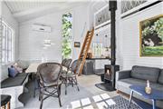Et flot renoveret sommerhus i virkelig hyggelig og charmerende stil. Indretningen leder tankerne hen på god gammeldags ferieidyl med hvidmalede trævægge, sprossede vinduer og en høj, flot brændeovn i midten af huset. Hovedhuset består af et godt udstyret køkken, stue med hems og et badeværelse med bruser og vaskemaskine. Derudover er der tilknyttet to mindre annekser: ét med to soverum og et badeværelse med bruser og ét med et soverum. Huset har på papiret måske ikke så mange m2, men det vejes helt og aldeles op af hjerterum og varme, og det bliver med garanti et hus, som mange vil vende tilbage til år efter år.