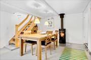 Sommerhuset har ligget her i de naturskønne omgivelser siden 1969, og senest er det blevet moderniseret i 2020. Det ses tydeligt på husets indre, der er lyst og lækkert indrettet – med behørig respekt for den oprindelige charme, så det stadig føles som et rigtigt sommerhus. Moderne faciliteter gør ferielivet bekvemt: For eksempel er der varmepumpe og wi-fi i sommerhuset, og et TV med Chromecast gør det nemt at streame film og serier. Andre ting er der dog ikke ændret på, for der er stadig brændeovn i stuen, og i den åbne køkkenafdeling skal opvasken klares i hånden på gammeldags manér. Udsigten er der selvfølgelig heller ikke ændret på, og den er fantastisk, blandt andet fra spisepladsen og stuens sofahjørne. Planløsningen byder endelig også på et badeværelse og tre soveværelser – sidstnævnte er ikke store rum, men til gengæld er dobbeltsengene af meget høj kvalitet og måler begge 140x200 cm.