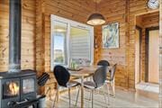 Et dejligt og hyggeligt sommerhus i træ med en helt speciel atmosfære fra de tykke bjælker, de lyse møbler og udsigten til klitlandskabet udenfor døren. Det dejlige Vesterhavslys strømmer ind ad de store vinduer, og med ild i brændeovnen bliver det vist ikke meget hyggeligere end her. Her er ikke mange moderne hjælpemidler eller et hav af kanaler på tv’et; til gengæld får man en ægte og autentisk sommerhusferie med mulighed for at komme helt ned i gear og vende verdenssituationen, mens man tager opvasken i hånden på god, gammeldags maner. Sommerhuset har et fint badeværelse og to soverum og er beregnet til tre personer; de helt ideelle rammer til en parferie med fokus på voksentid, samvær og ro.