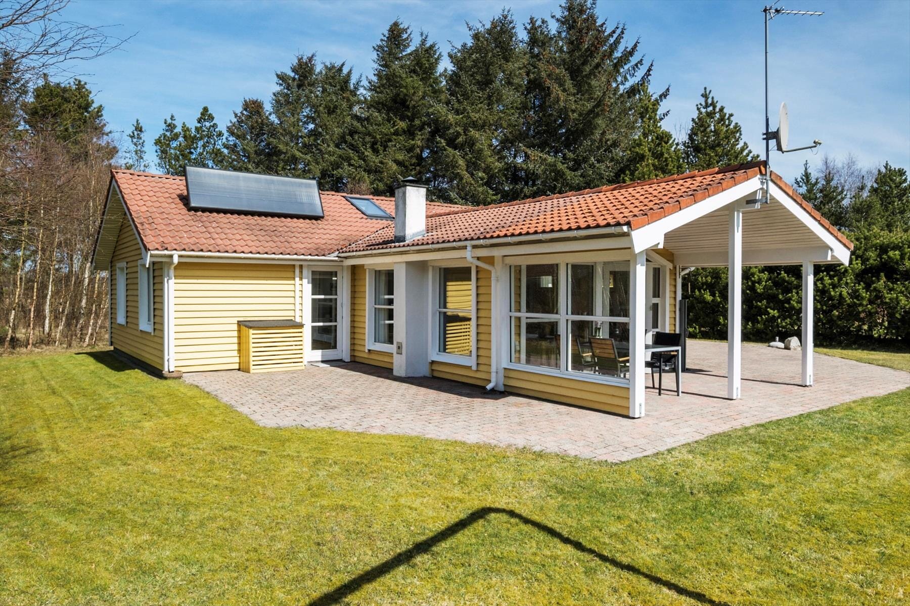 Som­mer­hu­set ligger på en stor na­tur­grund omkranset af træer, hvilket giver jer en helt privat og ugeneret be­lig­gen­hed i de smukke om­gi­vel­ser nedenfor Lien. Terrassen bliver hurtigt et fa­vo­rit­sted – især den skønne overdækkede del, som samtidig er aflukket i den ene side. Det giver læ for vinden og mu­lig­he­den for at sidde ude endnu flere dage og aftener, uanset vejret. Her kan I nyde måltider under åben himmel, mens I lytter til naturens ro. Og når lysten til havet melder sig, er der kun en kort gåtur til stranden, hvor I kan bade, gå ture og mærke Jam­mer­bug­tens friske brise. Re­stau­ran­ter og lokale fa­ci­li­te­ter ligger også tæt på – så ferien bliver både nem og fuld af op­le­vel­ser.
