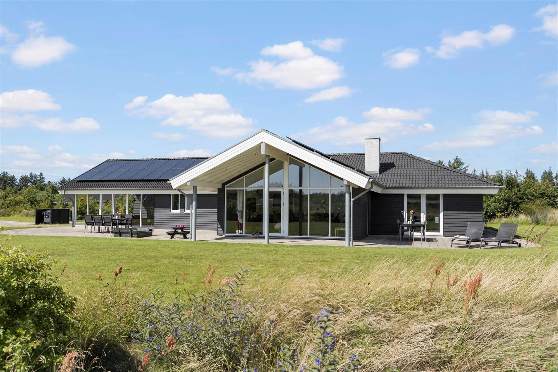 Dette sommerhus er noget af det bedste, vi kan tilbyde i Tranum- området, ja faktisk i hele Nordjylland. Her kan være op til 12 personer, og her er så godt udstyret med moderne faciliteter og aktiviteter, at man stort set ikke behøver at bevæge sig udenfor huset eller grunden under hele ferien. Bl.a. kan nævnes amerikansk køleskab, smart tv, internet med lynhurtig forbindelse (300/300mbit), 8 prs spabad, stor sauna og en gennemgående høj kvalitet i alt fra inventar til senge og dyner og puder. Ydermere er der installeret anlæg til genanvendelse af regnvand og til solenergi og jordvarme - der derfor ingen forbrugsomkostninger knyttet til brugen af dette sommerhus.