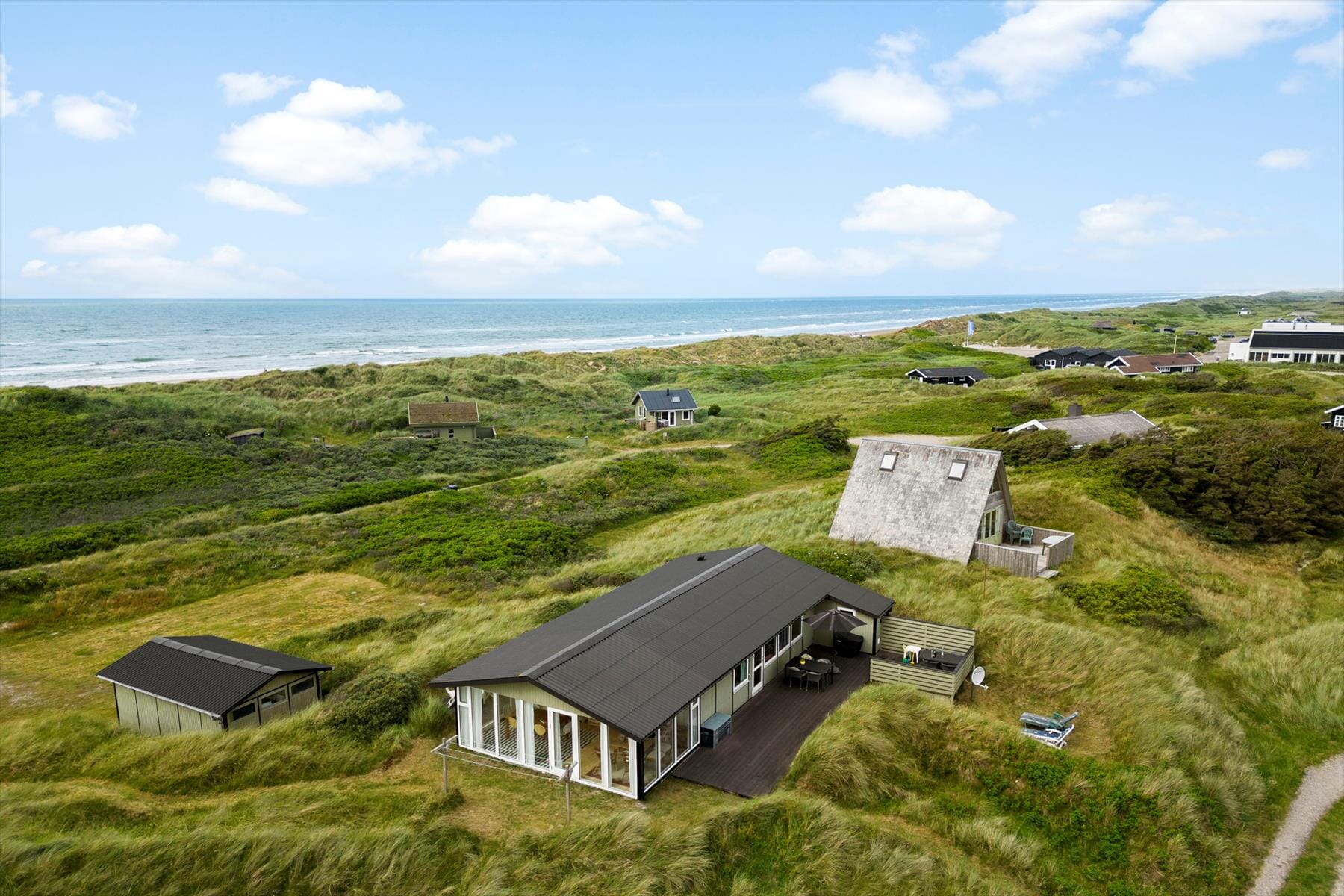 Udendørs kan du virkelig mærke, hvad det vil sige at holde ferie tæt på naturen. Fra husets terrasse har du direkte adgang til en stor naturgrund, hvor du kan nyde solen fra morgen til aften. Terrassen er perfekt til hyggelige grillaftener, og med havemøbler, liggestole og en parasol er du sikret optimal komfort. Den omkringliggende naturgrund indbyder til leg og boldspil for både børn og voksne, og der er gode parkeringsforhold trods husets placering tæt ved havet. Stranden, der kun ligger en kort gåtur væk via de nærliggende stier, er det perfekte sted at tilbringe lange sommerdage og måske endda afslutte en dejlig dag med solnedgang fra stranden af.