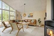 Dette moderne sommerhus er et nybyggeri fra 2025 og fremstår lyst og indbydende. Huset er indrettet med tre gode soveværelser, to badeværelser og et åbent opholdsrum, hvor køkken, spiseplads og stue smelter sammen i ét. Her er der god plads til hygge og samvær – uanset årstiden. Den hyggelige brændeovn skaber ekstra stemning på kølige dage, mens huset opvarmes af gulvvarmen fra en luft-til-vand varmepumpe, som sikrer lavt energiforbrug. Alt forbrug er inkluderet i lejeprisen, så du slipper for bekymringer om ekstraomkostninger.