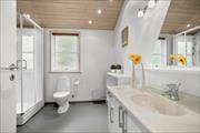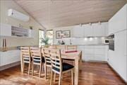 Inden døre er 86 m2 fordelt på blandt andet tre gode soveværelser og et badeværelse, der er udstyret med bruser, vaskesøjle, gulvvarme og sauna. Et køkken er her selvfølgelig også, og det er en hvid, grebsfri model med opvaskemaskine og ovn i arbejdshøjde. Spisebordet står lige ved siden af, så børnene kan sidde og spille spil, mens de voksne rører i gryderne – og når maden står klar, kan den hurtigt serveres enten her eller på den tilstødende terrasse. Stuen ligger i åben forbindelse med køkkenet, og den er indrettet på samme lyse og stilfulde manér som resten af huset.