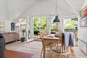 Forestil dig at vågne op til synet af rådyr, der forsigtigt bevæger sig hen over den åbne grund foran den hyggelige ferieoase. Dette sommerhus oser af charme og hygge. Når morgensolen skinner gennem de store vinduer i gavlen, fyldes hele huset med et varmt og indbydende lys, der skaber en særlig atmosfære. Husets hjerte er det store alrum, hvor køkken, spisehjørne og sofahjørne smelter sammen og skaber en skøn stemning. Her kan familien samles omkring spisebordet for at spille spil, dele grin og historier, eller blot nyde hinandens selskab og samtaler om livets små og store oplevelser. Her er plads til ro, fred og en pause fra hverdagen, hvor du kan være til stede og nyde tiden sammen. Og når behovet for lidt alenetid melder sig, kan du trække dig tilbage med en god bog eller strikketøjet foran den knitrende brændeovn, som spreder varme og hygge i rummet.