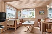 Udendørsområdet byder på en skøn terrasse. Den rummelige have med græsplæne er ideel til leg, spil og solbadning. Slap af i de komfortable solstole og nyd roen. Fra terrassen kan du beundre udsigten over sommerhusområdet, legepladsen samt et lille havkig. Ved ankomst kan du parkere bilen i indkørslen, som ligger lige op ad huset, s å du nemt kan komme tørskoet indenfor. Her er der masser af plads til at nyde livet og den friske luft i fulde drag.