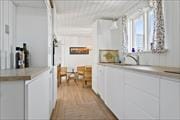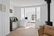 Sommerhuset har et fint, åbent køkken med god plads til at tilberede feriens måltider, hvorefter service kan sættes i husets opvaskemaskine. Køkkenet har forbindelse til den store og lyse stue, hvor I kan slappe af i en behagelig sofa og øvrige møbler.