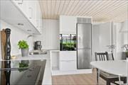 Sommerhuset fremstår lyst og venligt med en afslappet atmosfære, hvor du straks føler dig hjemme. Det åbne køkken indbyder til hyggelige stunder med fælles madlavning og gode samtaler – og med et vinkøleskab ved hånden kan du altid nyde et køligt glas vin i godt selskab. Rundt om spisebordet er der plads til nærvær – måske et spil, en god bog eller blot tid til at være sammen. Den hyggelige udestue forlænger opholdsrummet og giver jer endnu flere muligheder for afslapning, uanset vejret udenfor.