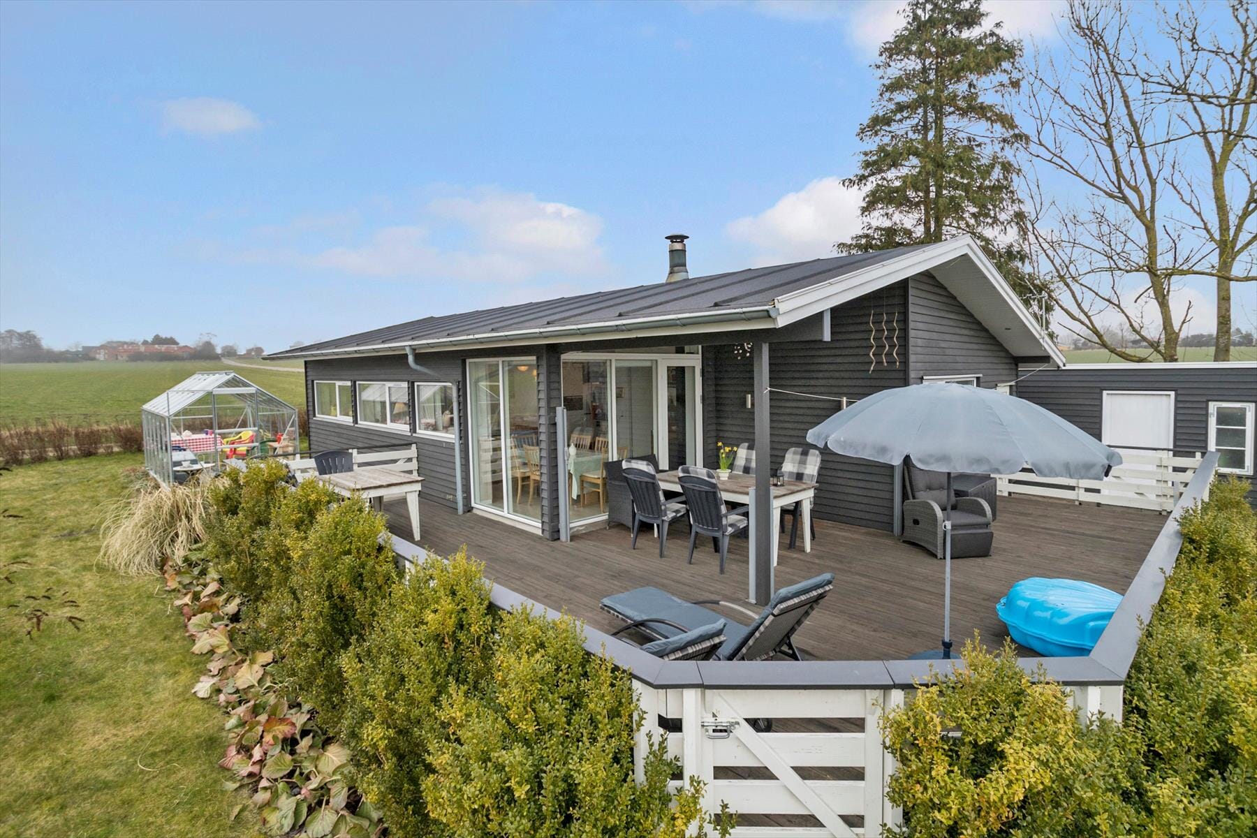 Sommerhuset er beliggende i et hyggeligt sommerhusområde og ligger lige overfor en legeplads til de mellemstore børn. Huset har en indhegnet terrasse med gode havemøbler, liggestole og gasgrill. Fra terrassen har I et lille ”havkig” til As Vig Bugten. Foran huset er der et åbnet græsareal med god plads til leg. I haven finder i også et drivhus, hvor man fint kan sidde og hygge sig og nyde udsigten over markerne. Til huset er der to cykler til rådighed, som kan bruges på eget ansvar og i den i stand de findes.
